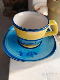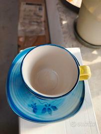 Set di tazzine da caffè composto da 12 tazzine e 12 piattini. Mai usate , dipinte a mano. Visto il materiale sarebbe preferibile la consegna a mano.