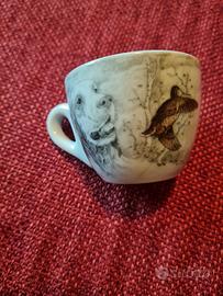8 STUPENDE tazzine da caffè porcellana di ottima qualità tipo bar con piattino , UNICHE NEL SUO GENERE perché prodotte in quantità limitata, COFFEA Friends Collection firmate, con raffigurate 3 soggetti diversi di cane c/uccelli (Labrador c/germani, Pointer con pernici e Setter con beccacce)..sono disegnate tutto intorno senza spazio bianco OTTIMO IDEA anche COME REGALO ....se possibile consiglierei il ritiro in loco visto la fragilità del prodotto