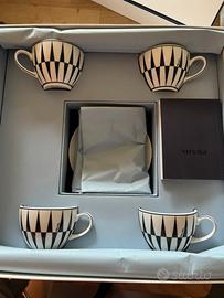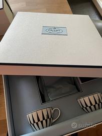 N. 4 tazzine e piattino in porcellana Stripe di Prada. Disegno iconico di casa Prada per la replica del pavimento del loro primo negozio a Milano.