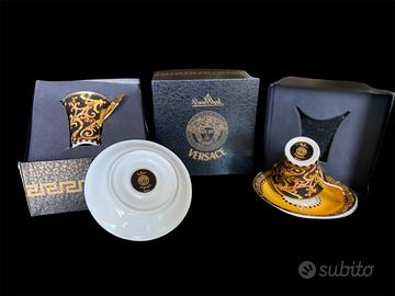 Versace tazzine da caffè, linea Ikarus Barocco by Rosenthal Condizioni: Nuove, mai utilizzate 📦 Confezione: Complete di scatole originali ☕ Composizione: Tazzina + piattino coordinato 🎨 Design: Iconico stile barocco Versace, raffinato e senza tempo Perfette sia per collezionisti che per chi desidera impreziosire la propria tavola con un tocco di lusso.