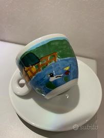 Tazzina da caffè e un piattino della collezione d'arte Illy/Amici "Los Niños, Cambiaremos El Mundo" del 1998.