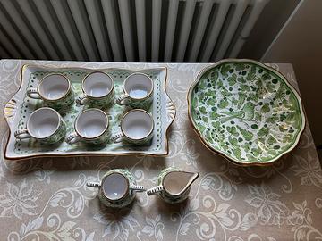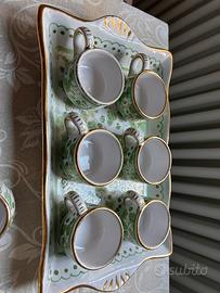Magnifico set da caffè realizzato a mano dai maestri ceramisti di Sambuco Deruta, rinomati per la loro eccellenza artigianale in Italia.