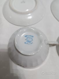Tazzine da tè o cappuccino in porcellana con bordo in oro e decoro floreale Edelweiss qualitat, piattini in porcellana con bordo in oro ACF porzellan. Tazzine e piattini fanno parte di set separati ma concordano per misure e sono entrambi vintage