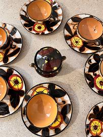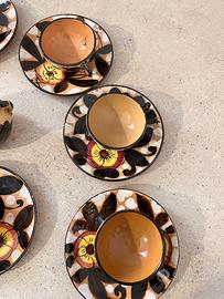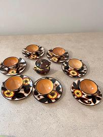 N 7 tazzine con zuccheriera in terraglia (terra cotta) vintage. Essendo molto datate, alcune presentano ammaccature vedasi le ultime foto. Alcune sono sistemabili. Disponibile per ulteriori informazioni.