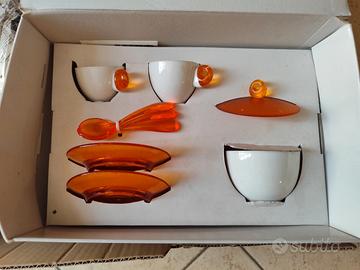 Set tazzine da caffè guzzini (anno 2008) mai usate due arancio con una zuccheriera, piattini e cucchiaini due gialle con piattini e cucchiaini prezzo super ritiro a casa