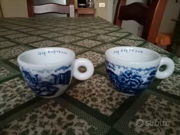Due tazzine da caffè da collezione Illy Espresso, serie "Città dell'Arte Fondazione Pistoletto", anno 2005, realizzate dall'artista Rufus Willis.