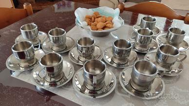 12 tazzine Domus vintage Design anni 70 con piattini in acciaio inox 18/10 doppia parete marca Kocchin mai usate.