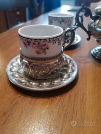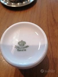Servizio di tazzine in porcellana bavarese e basi in peltro 95% lavorati a mano Manca una tazzina andata rotta