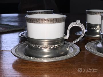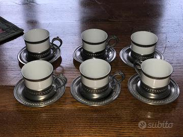 Sei tazzine ceramica e peltro