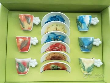 Set da caffè thun, colori vivaci fiori e foglie. Manici forma di fiore