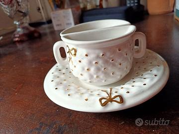 particolare coppia di tazzine da caffè in ceramica, Non ci sono difetti nè sbeccature. La richiesta è di 20 euro.