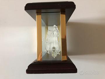 Teca in legno ,vetro, metallo e specchio con veliero in vetro soffiato. In ottime condizioni.