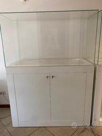 Vendo due teche per esposizione prodotti, usate per fiere, base bianca con vano interno, il vetro si può alzare per posizionare i prodotti.