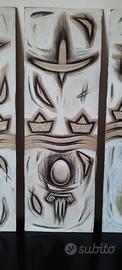tre lavori in tecnica mista su cartoncino datati e firmati ciaci, integri in perfette condizioni dimensioni cm 15 x 45.