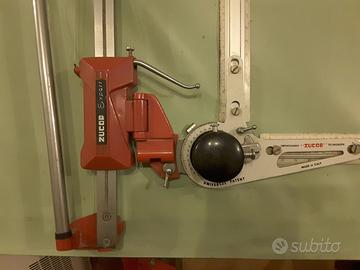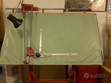 Tavolo da disegno professionale Bieffe con tecnigrafo a carrelli Zucor, rosso. Dimensioni tavolo da disegno: 170 cm. x 100 cm.
