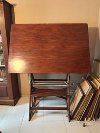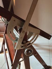 Tecnigrafo in legno anni 50 con meccanismo di sollevamento e inclinazione del piano da disegno. Dimensioni piano cm 150 x 100, altezza massima cm 180,