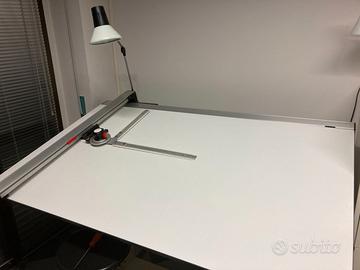 Tecnigrafo professionale Neolt Center (con pistone centrale), orientabile e inclinabile in tutte le direzioni, utilizzabile anche come tavola da disegno libero / lavoro. Compreso goniometro a bracci mobili ortogonali e lampada da montare come quelli del tavolo analogo in foto, escluse solo le squadrette applicabili