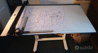 Tecnigrafo professionale in buone condizioni, con misure 141x87,5x h media 90 cm, con sgabello tecnico regolabile in altezza ad € 20 e lampada