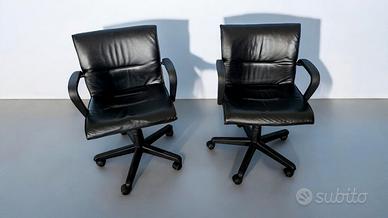 Coppia di Poltrone da ufficio Tecno modello: QUALIS Nel disegnare questa collezione di poltrone e poltroncine per l’ufficio, Emilio Ambasz cerca di sintetizzare due concetti opposti che lo stesso progettista definisce “familiarità” ed “eccezionalità”. Il design delle sedute della serie Qualis è caratterizzato dal rivestimento di taglio “sartoriale” della scocca. Poltroncina con articolazione dello schienale, altezza regolabile, base girevole, con scivoli e braccioli L 58 P 57 H 79/9 Condizioni ottime, per qualsiasi informazione contattatemi al 3403341898
