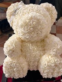 Oggetto di arredo design a forma di teddy bear fatto di rose bianche dimensioni: 80 cm x 40 cm circa