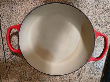 La casseruola bassa in ghisa di Le Creuset è perfetta per cucinare svariati piatti, grazie alla sua ampia forma piatta e ai lati poco profondi consente di rosolare perfettamente carne e verdure.