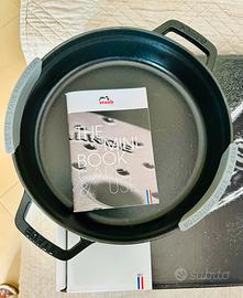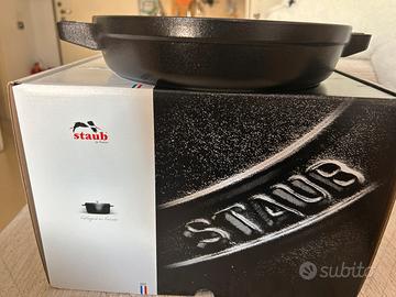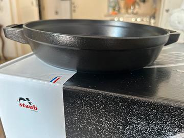 1 tegame in ghisa Staub dismetro cm 24, altezza cm 8, usato due volte, condizioni perfette. Senza coperchio.