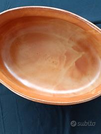 Splendido tegame ovale in terracotta artigianale per amanti della cucina artigianale e delle cotture lente. La terracotta garantisce una distribuzione del calore uniforme esaltando i sapori naturali dei cibi.