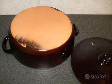 Vendo TEGAME PIRAL da fiamma in terracotta smaltata. a due manici con coperchio. Vintage Made in Italy (non cineserie) NUOVO e integro Diametro 24x9 Da fiamma, forno, microonde, per la tavola. Lavabile in lavastoviglie. da utilizzare sulla fiamma. diretta o con uno spargi fiamma Le righe sul coperchio è solo il riflesso della foto Consegno Cappelle sul Tavo o fine Via Vestina Montesilvano o centro commerciale L'Arca Spoltore(PE) NON SPEDISCO €5,00