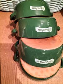 quattro tegami in terracotta con due manici colore verde nuovi mai utilizzati