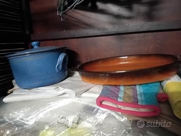 tegame terracotta smaltato in blu con coperchio e pirofila ovale.. nuovi..