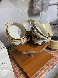 N.6 tegamini in ceramica decorati a mano da forno, diametro 15