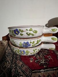 Vendo 6 graziosi originali tegamini per zuppa in terracotta decorati a mano poco usati ben conservati diametro 15 cm.