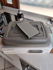Teglia con coperchio e tagliafetta in acciaio al carbonio utilissima per trasporto alimenti, Nuova, vendo per regalo duplicato.