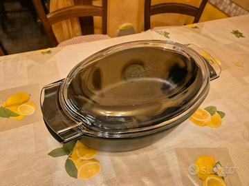 Teglia ovale con rivestimento in pietra antiaderente con coperchio in vetro temprato.