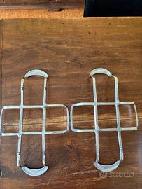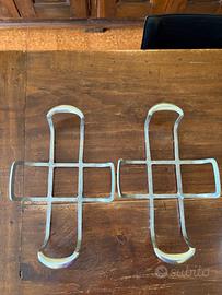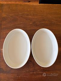 nr. 2 teglie bianche con supporto in metallo da presentare a tavola. Misure: lunghezza cm 28 larghezza cm 19