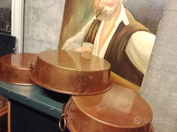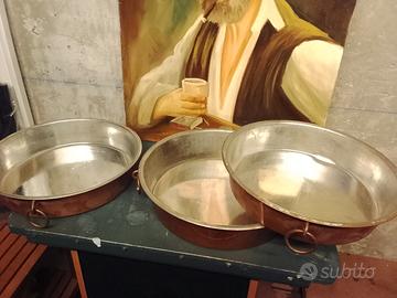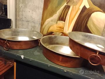 bellissime teglie stagnate rame cm 34,31,30,ideali x pastiere, molto belle.(20 euro cad.)
