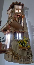 Tegola in terracotta artigianale pezzo unico rifiniture in legno tutto realizzato a mano luce led .