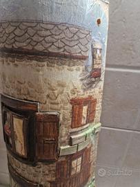 Tegola decorata realizzata interamente a mano con tecnica del decoupage dimensioni altezza 45 larghezza base 17 larghezza in alto 13