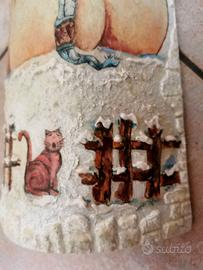 Bellissima tegola decorata a mano con tecnica decoupage, a tema natalizio con pupazzi di neve.