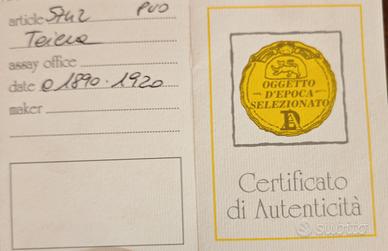 teiera d'epoca con certificato di autenticità. datata tra il 1890 e 1920.