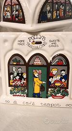 La teiera raffigura una tipica sala da tè inglese chiamata "Polly's Teapot Café".