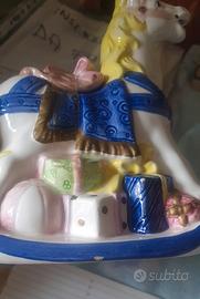Vintage anni 80 Teiera decorativa da collezione a forma di cavallo a dondolo in ceramica con finitura smaltata. Vintage Heritage Mint.Ltd England pezzo decorativo da collezione per la casa mis. cm.20 x 14 x 18 H peso gr. 484 piccolissime scheggiature come da foto.