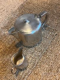 Teiera argento Sheffield inizi ‘900 – produttore Walker & Hall di Sheffield – dimensioni: larghezza 19,5 cm; altezza 11 cm; profondità 10,5 cm. Lattiera in argento dimensioni: larghezza 9 cm; altezza 6,5 cm; profondità 5 cm