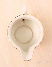 Elegante teiera in ceramica in coppia con lattiera marca mitterteich Bavaria bordatura in oro su sfondo bianco con distesa di fiori ottima presenza in una vetrina da credenza. Raffinata figura quando si serve ad ospiti dimensioni medie: teiera diametro 11.6 diametro foro 8 cm profondità 7.3 cm.Lattiera diametro foro 6.2 cm diametro generico 7.6 cm.profondita' 5.1 cm.L oggetto si presenta in buone condizioni come visto così viene consegnato. (La lattiera nn è provvista di coperchio e questo particolare ne limita il prezzo) Se desiderate vi do il benvenuto nel mio angolo affari con prezzi onesti e bilanciati! Presentazione del prodotto compresi eventuali difetti! Serietà e cortesia sono alla base di ogni vendita. La tranquillità di comprare la qualità al giusto prezzo! Date pure un occhiata agli altri miei annunci potreste rimanere sorpresi da quello che troverete! L oggetto si presenta in ottime condizioni e può essere ritirato in luogo da concordare a Verona e provincia.Non è prevista la spedizione.Vi ringrazio