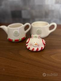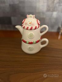 Teiera e tazza con coperchio componibili a tema natalizio: mai usata