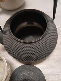 teiera in ghisa e tazza in ceramica, non spedisco, consegna a mano.