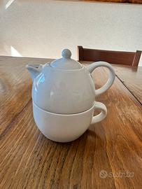Teiera con tazza in porcellana bianca AD trena, mai usata
