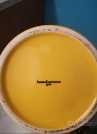 Teiera in porcellana gialla firmata Andrea Fontebasso 1760 per Tognana con copriteira termico decorato, coperchio, e filtro per tisane