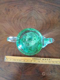 Graziosa teiera in vetro con inclusione colorata di verde. Dimensione massima, come da foto, 14 cm