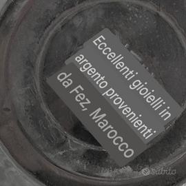 Presenta un'incisione sul fondo, riportante la dicitura "eccellenti gioielli in argento provenienti da Fez, Marocco"
